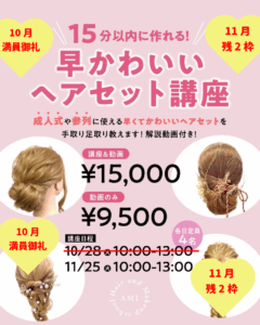 対象:ヘアセットがほぼ初めての方。経験1年未満が目安。1からヘアセットを学びたい方。